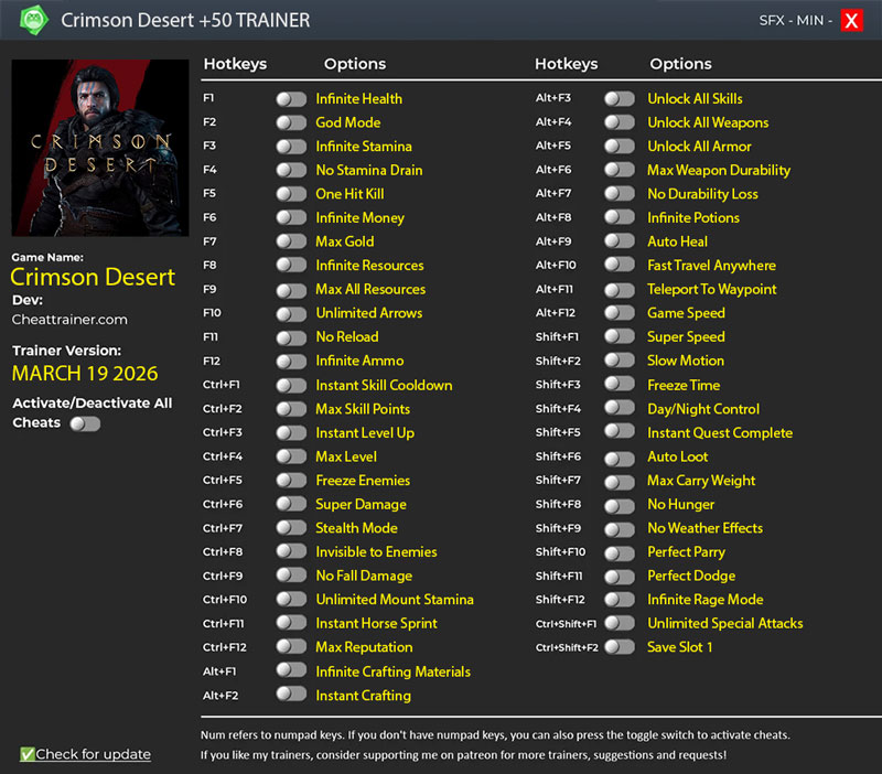 Crimson Desert is fun, but sometimes you just want to go have some fun. Our trainer lets you: