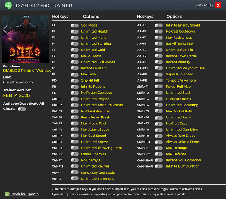 Our Diablo 2 Reign of the Warlock +50 trainer is now available for free download.