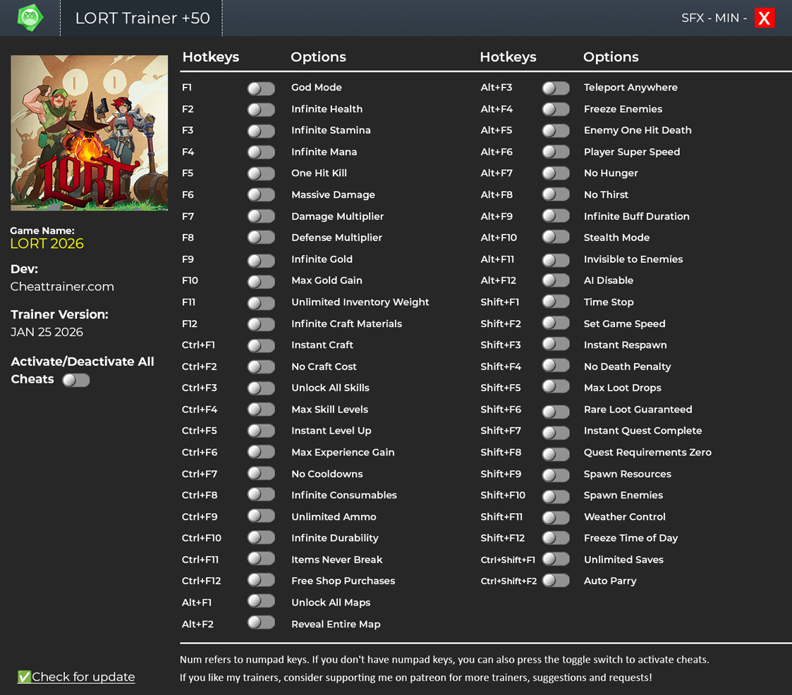 LORT Trainer 2026 (+50 Cheats) FREE Download