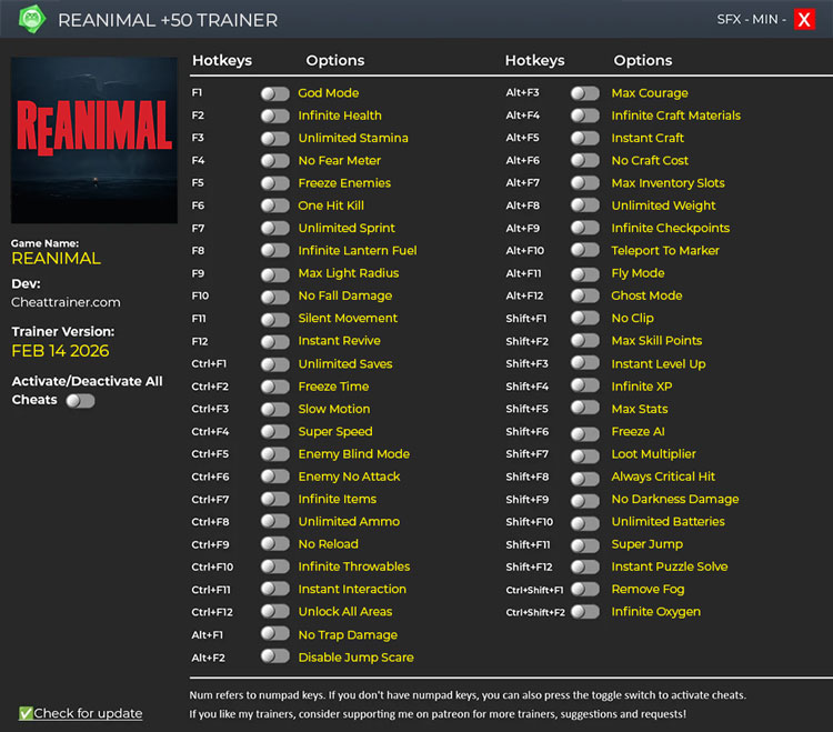 Our REANIMAL +50 trainer is now available for free download.