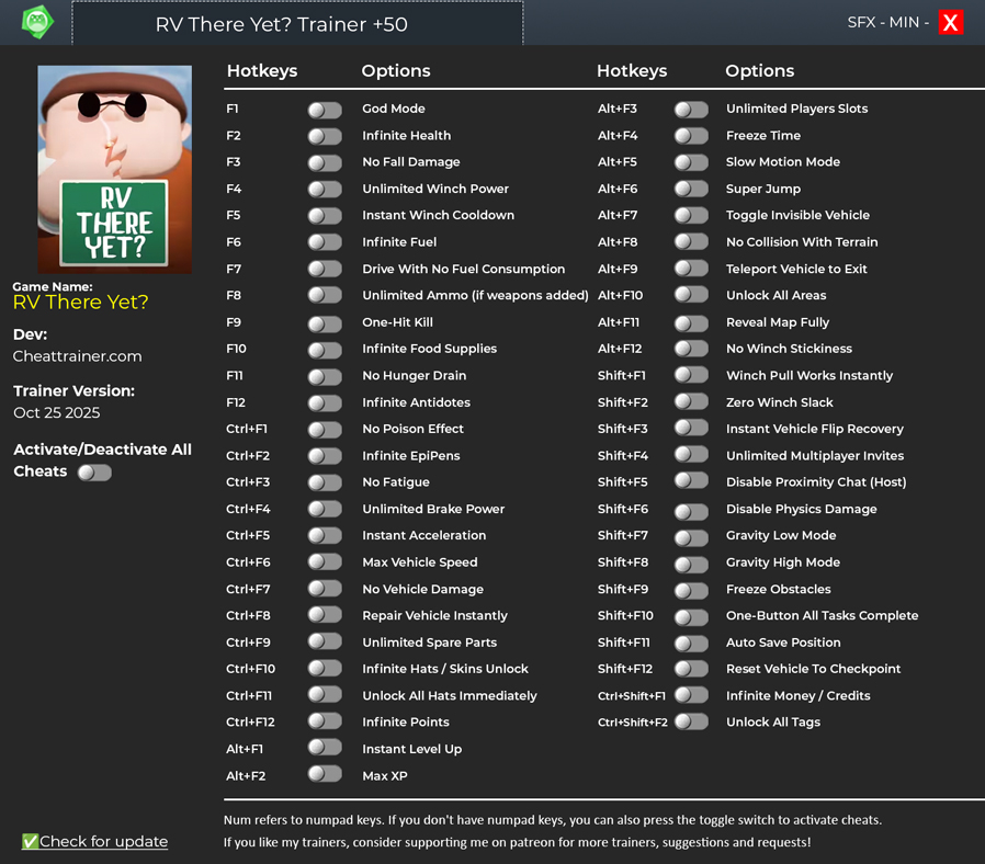 Our RV There Yet? +50 trainer is now available for free download. These RV There Yet? cheats are designed to enhance your experience with the game.