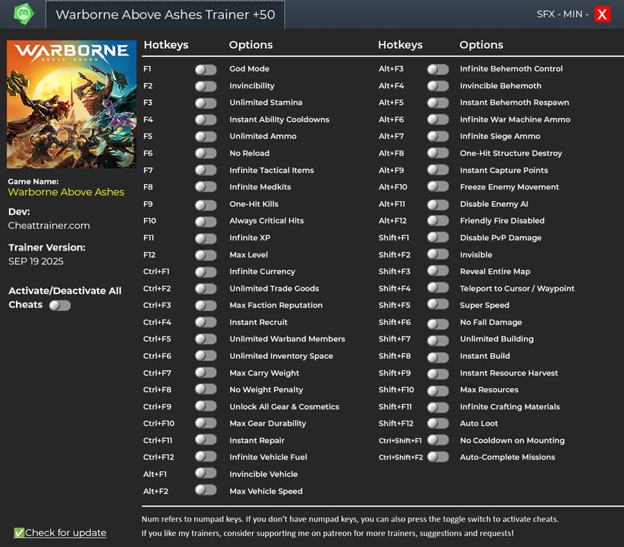 Our Warborne Above Ashes +50 trainer is now available for free download. These Warborne Above Ashes cheats are designed to enhance your experience with the game.